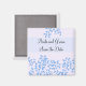 Compartilhe seu dia especial com este elegante design de vinha azul. Em um fundo branco com uma banda de azul com pequenas bolinhas brancas para destacar seus nomes e data. Personalizar conforme desejado.