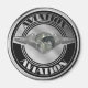 Arte da aviação prateada, globo metálico com asas de aviação prateada em logotipo retrô.