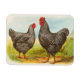 Uma foto de vintage com uma galinha e um galo Barred Plymouth Rock.