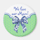 Este estilo de colheita, borboletas e arcos, azuis e brancos, fazem deste ímã um presente divertido e pensativo. Personalize com o nome de alguém especial por um presente pensativo. Perfeito para primavera, Páscoa, Dia de as mães, Aniversário ou a qualquer momento. O design pode ser usado em qualquer número de acessórios e decorações, funciona bem com chique, vitoriano, eclético, francês de país, inglês de país ou decoração tradicional.