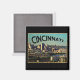 Esta surpreendente imagem da vintagem moderna de Cincinnati, Ohio, mostra uma vasta paisagem urbana de arranha-céus e prédios com o rio Ohio percorrendo.