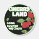 Poster de viagens de ilustração da Vintage de Cherryland, Door County, Wisconsin, apresentando grandes cerejas orgânicas maduras a partir de um pomar de fruta de cereja próximo.