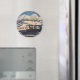 Imagem de viagens vintage e transporte que apresenta uma família para uma unidade em um carro antigo. Eles estão em férias de esqui e dirigindo pelas montanhas na neve durante o inverno no caminho para a estação de esqui.
