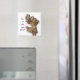 Uma menina adorável com um ovo pergunta, "Podemos colorir os ovos, por favor?" Magneta bonita para decor de Páscoa ou para dar como presente!