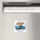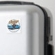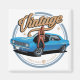 Esta é uma renderização de um carro músico clássico americano azul com uma garota de pin-up clássica e gráficos de estilo vintage em segundo plano para um olhar retrô.