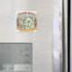 Um rótulo de vintage será reproduzido em um ímã só para você.