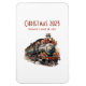 Um ímã flexível com uma ilustração de um velho comboio a vapor vintage. Decorado com flores vermelhas de Natal.
