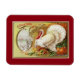 Foto bonito e vintage de um peru branco, peregrinos e abóboras com a mensagem "Saudações de Ação de Graças" aparece neste ímã. Use como decoração de Ação de Graças ou dê como um pequeno presente!