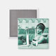 Renderização digital 3D de uma bela jovem vintage sentada num carro no fundo de uma cidade de verão, coloração verde