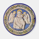 Elegante clássico, vibrante Renaissance fine art, obra-prima de Bottega della Robbia ( Florence - Itália ) em cores brancas, azuis, verdes, castanhas.Madonna com anjos brancos no céu azul e uma coroa floral decorativa.
