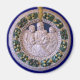 Elegante clássico, vibrante Renaissance fine art, obra-prima de Bottega della Robbia ( Florence - Itália ) em cores brancas brilhantes, azuis, verdes, castanhas.Madonna com santos no céu azul numa coroa floral decorativa.