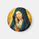 O fundo comum e escuro contrasta com a cabeça radiante da Virgem e com a morada branca que a cobre, e as mãos dela são cuidadosamente fechadas.