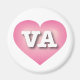 Este ímã apresenta um coração legal, cor-de-rosa, com um centro lavado em branco contendo as letras maiúsculas, em negrito, branco, VA, a abreviação oficial de Virginia, o Antigo Estado Dominion.