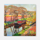 Um barco-oficina nos campos holandeses, pintura de belas artes pelo artista holandês Ben Viegers