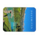 Uma bela vista de um pequeno lago na cordilheira dos Dolomites perto da aldeia de Moena, na Itália, impressa em uma imã de geladeira de souvenir.