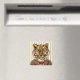 Este design apresenta um tigre vestindo uma jaqueta inteligente e uma gravata vermelha de arco.