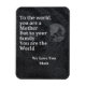 Celebre a mulher que significa o mundo para você com o nosso íman "Você é a nossa Mãe do Mundo". Apresentando uma design elegante e minimalista em preto elegante—reminiscente do céu noturno—este ímã faz um presente na moda e sentimental para ela. Perfeito para Dia de as mães, aniversários, ou só porque, é um belo lembrete de quanto ela é amada. Personalize-o com nomes ou uma mensagem especial para torná-lo verdadeiramente de um tipo. Uma manutenção moderna e significativa que adiciona um toque sincero a qualquer geladeira ou espaço de trabalho!