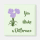 Aumente a autoestima com esta mensagem positiva de amor e apreço num ímã de geladeira! ideia de presente de excelente para amigos e crianças. Este design inclui flores roxas e cor-de-rosa e o texto "Você Faz uma Diferença".