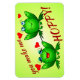 Um casal de sapos de desenho animado felizes e excelente engraçado para qualquer pessoa que goste de sapos, animações bonitinhas ou humor; um símbolo de afeição, um presente para o Dia da Amizade, estocação para o Natal, diversão para os miúdos; dê ao seu marido ou esposa, ao seu querido, um casal fofo, neto, colaborador, alegre e otimista! Você tem alguma margem criativa, por exemplo na seção de personalização você pode mudar a mensagem, talvez para "você nos faz espertos" ou o que melhor se adequar à ocasião. Estes sapos verdes vinham com corações de amor vermelho, e uma fonte vermelha dinâmica e profunda diz "você me faz HOPPY!" O sapo do menino tem olhos azuis e um sorriso amigável e maravilhoso. A sapo da senhora tem um sorriso vermelho adorável, sombra azul verde-olhal e lascas longas cativantes. Esta charmosa mão desenhada design é original e exclusiva de M. Sylvia Chaume, Canadá. Bênçãos esperançosas!
