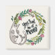 Jardim Puro VII por Janelle Penner. Um gato cinza bonito relaxa na frente de uma coroa de verde e flores. A frase "você me teve no meow" descansa dentro na coroa.| SID22662