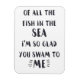 NewParkLane - Magnet, com citação romântica: "De todos os peixes no mar estou tão feliz que você nadou para mim" em divertida e moderna tipografia de guião em preto e branco. Verifique se há itens correspondentes nesta coleção. Você tem desejos pessoais específicos de design? Sinta-se livre para me contactar!