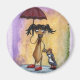 Essa doce menina e sua boneca estão tentando duro para não se molhar...que belo ímã para sua geladeira ou seu escritório.
