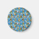 Letras maiúsculas A B C D E F G H I J...animais domésticos e ferramentas escolares contra um padrão de repetição do céu azul