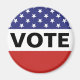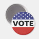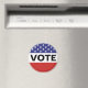 Como lembrete para sair e votar, este ímã mostra as estrelas e cores da bandeira vermelha, branca e azul americana junto com o texto que diz "Vote".