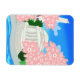 Imagem caprichosa do Memorial Jefferson e do Monumento de Washington entre as flores de cereja. Ilustração ©2021 Michael C. Paul https://mikepaulart.com