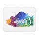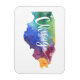 Esta design apresenta um mapa do Estado de Illinois dos EUA apresentando a cidade de Chicago com uma textura de aquarela pintada com várias cores. O texto estilizado de "Chicago" é adicionado por cima com uma estrela para indicar a localização da cidade.