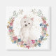Este ímã mostra uma imagem de uma coroa primavera em cores de cor rosa suave, azul, dourado, verde e creme. No centro está um belo retrato de aquarela de um adorável Terrier branco de West Highland. Pequeno confete de ouro adiciona interesse ao fundo. Perfeito para quem ama um Westie!