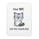 Um ímã x 4 polegadas de 3 polegadas com uma engraçada, sarcástica e um pequeno gato assustador que está claramente se declarando a escolha preferida para afeto em relação ao cão.