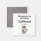 O ímã quadrado de 2 polegadas Cat House com humor vindo daquela entrada dupla, uma piada de língua na bochecha.