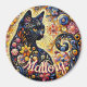 Íman Whimsical Floral Black Cat Kitty Personalized