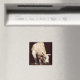 Poderoso touro branco balançando e chutando poeira com um aspecto muito expressivo, perfeito para os entusiastas do rodeio. Trabalho de arte por Sally Lannier/Painted Dreams Designs