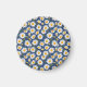 Margaridas bonitas, pequenas e brancas com centros amarelos brilhantes sobre fundo azul criam um ímã simples e doce.
