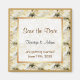Sutil e elegante em damasco dourado, com uma bela profusão de rosas brancas na fronteira. Personalize com suas informações de casamento.