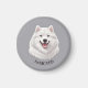 Este ímã apresenta uma imagem IA de belos brancos, samozados em fundo de cinza. Personalize-o com o nome ou fotografia do seu animal de estimação.