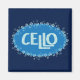 Texto violoncelo padrão em um oval decorativo azul é um design de presente único para músicos de cordas, professores de música escolar e estudantes em orquestras e conjuntos de cordas.