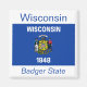 Uma imagem autêntica de boa qualidade da bandeira de Wisconsin definida entre o nome do Estado e o apelido sobre um fundo de cor de bandeira.