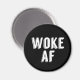 Sou o presente político do Woke AF para uma pessoa que permanece atual nos assuntos políticos e vai a marchas para protestar e lutar por direitos iguais, saúde, e leis sensatas sobre armas. O texto branco de um ímã preto faz uma declaração em negrito.