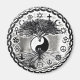 A paz mundial yin yang com os principais símbolos religiosos e uma árvore da vida no centro.