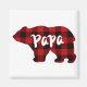 Design do Papá Bear com detalhes de xadrez de búfalo vermelho e preto.