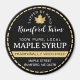 Xarope de ácer clássico para promover seu xarope de ácer local tradicional. Dourada folha de bordo de açúcar em fundo preto.