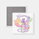 Xiamen da província de Fujian num mapa colorido da China inclui os símbolos chineses para 'Xiamen' e a sua localização está marcada no mapa com um coração e uma bandeira. Um belo e único presente de adoção da China! Personalize-o com um nome ou foto também! Projetada por Hendrika em RedThreadMaps.com