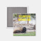 Viva a beleza do Parque Nacional de Yellowstone com um Bison relaxado perto de um gênio fervente com este ímã!