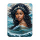 Imagem do Magnet trabalho de arte retratando a orisha do oceano, Yemaja (também conhecida por Yemoja, Lemanjá); deusa d'água nigeriana (Yoruba). Esta pintura original de óleo mostra uma linda jovem africana vestindo uma joia de coroa e pérolas, seu corpo imerso em ondas oceânicas. Melanin mermaidcore e arte estética de royalties de Dee Claire.