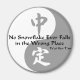 Yin yang, símbolo de Tao, com o provérbio de Zen "No Snow Flake Ever Falls in the Wrong Place".