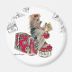 Um cão aterrorizante de yorkshire pronto para viagem é adorável por cartas, presentes e roupa. Diversão em itens para casa e escritório também. Esta pequena yorkie é Paisley. Ela tem a bolsa e está sentada na mala pronta para viagem. Se precisar de ajuda para personalizar o contato Greer em greerdesign@aol.com