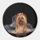 Belo Yorkshire Terrier da turma de espetáculos com arco vermelho sobre fundo refletor preto
